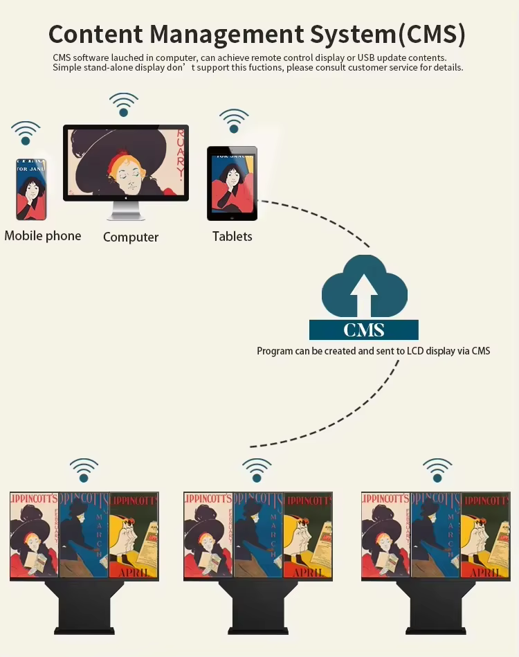 Για τους πεζούς και τα οχήματα στο δρόμο, προτείνεται προτεινόμενη προτεινόμενη προβολή διαφημίσεων και ενημέρωσης ύψους 4K διαφήμισης 75 ιντσών. Ταυτόχρονα μπορεί να παρέχει καθημερινό ερώτημα χάρτη και πληροφοριών