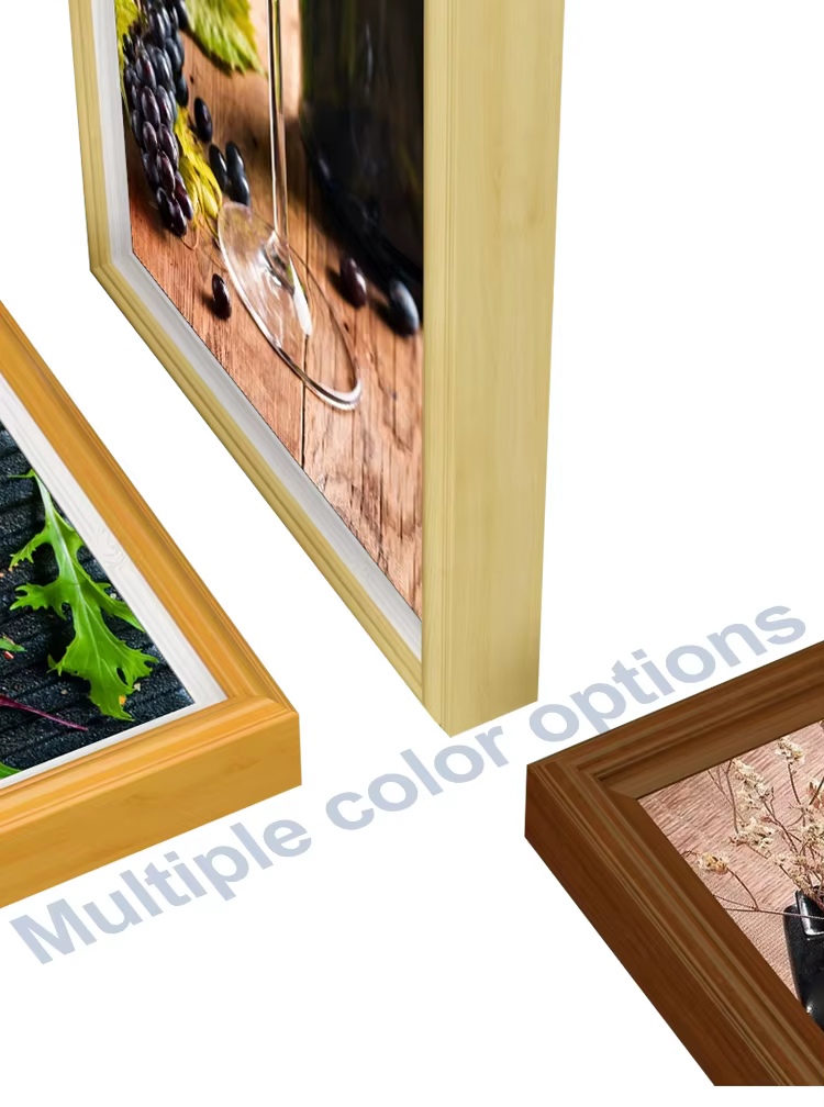8. Πώς πολλά χρώματα αυτού του πλαισίου οθόνης NFT; Ξύλινα χρώματα πλαισίου: μαύρο, λευκό, σημύδα, μαόνι, προσαρμοσμένο χρώμα.